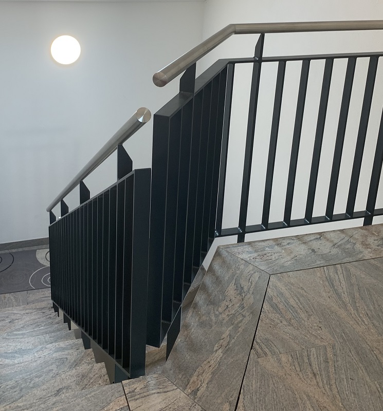 Innentreppengeländer aus Stahl (pulverbeschichtet) mit Edelstahlhandlauf